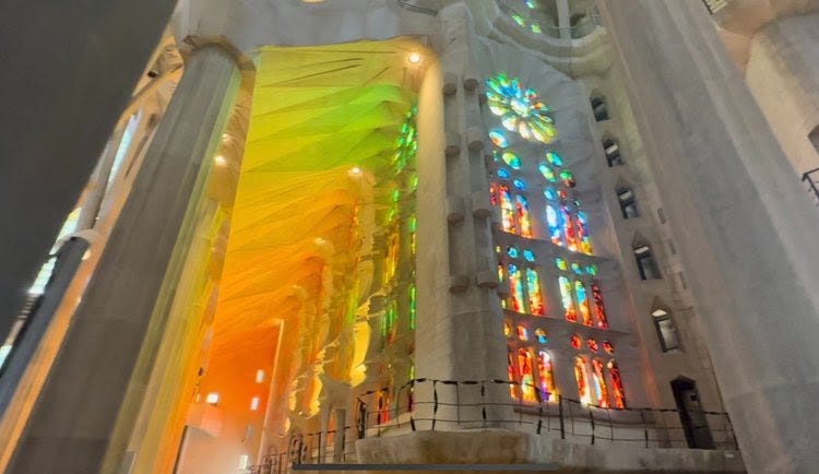 Visual design, art, and architecture - The light through the stained glass windows of Sagrada Familia in Barcelona.
